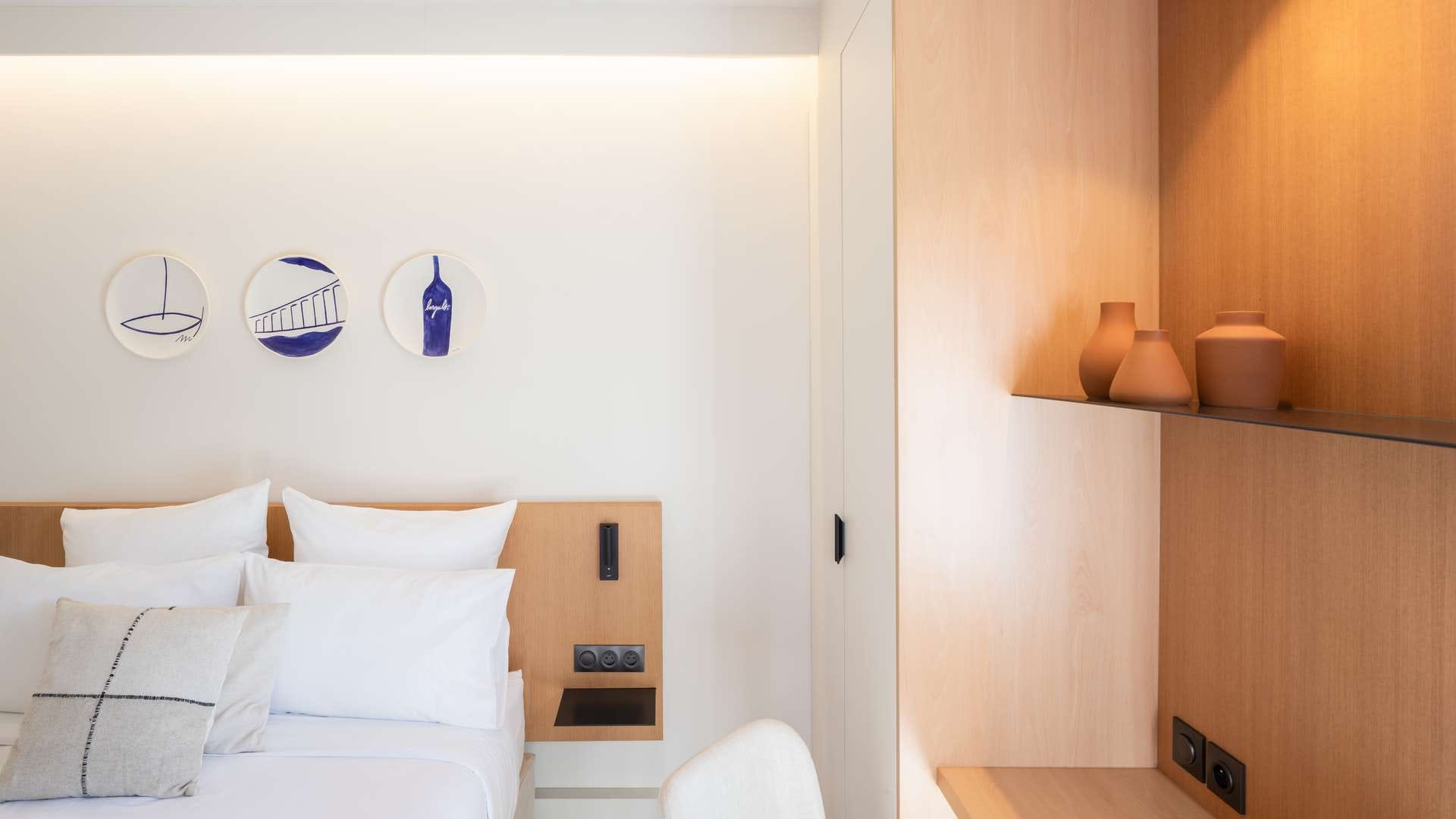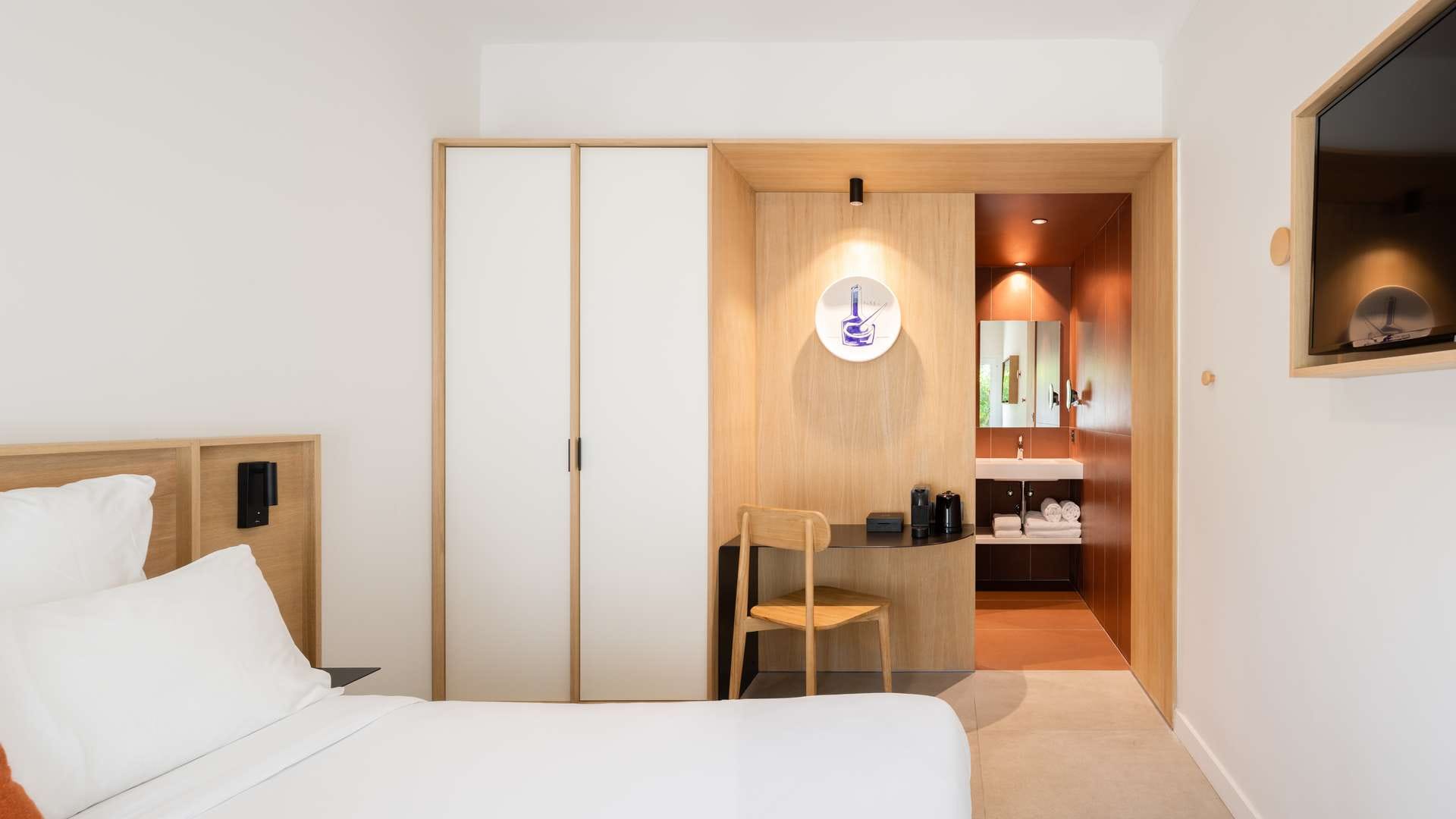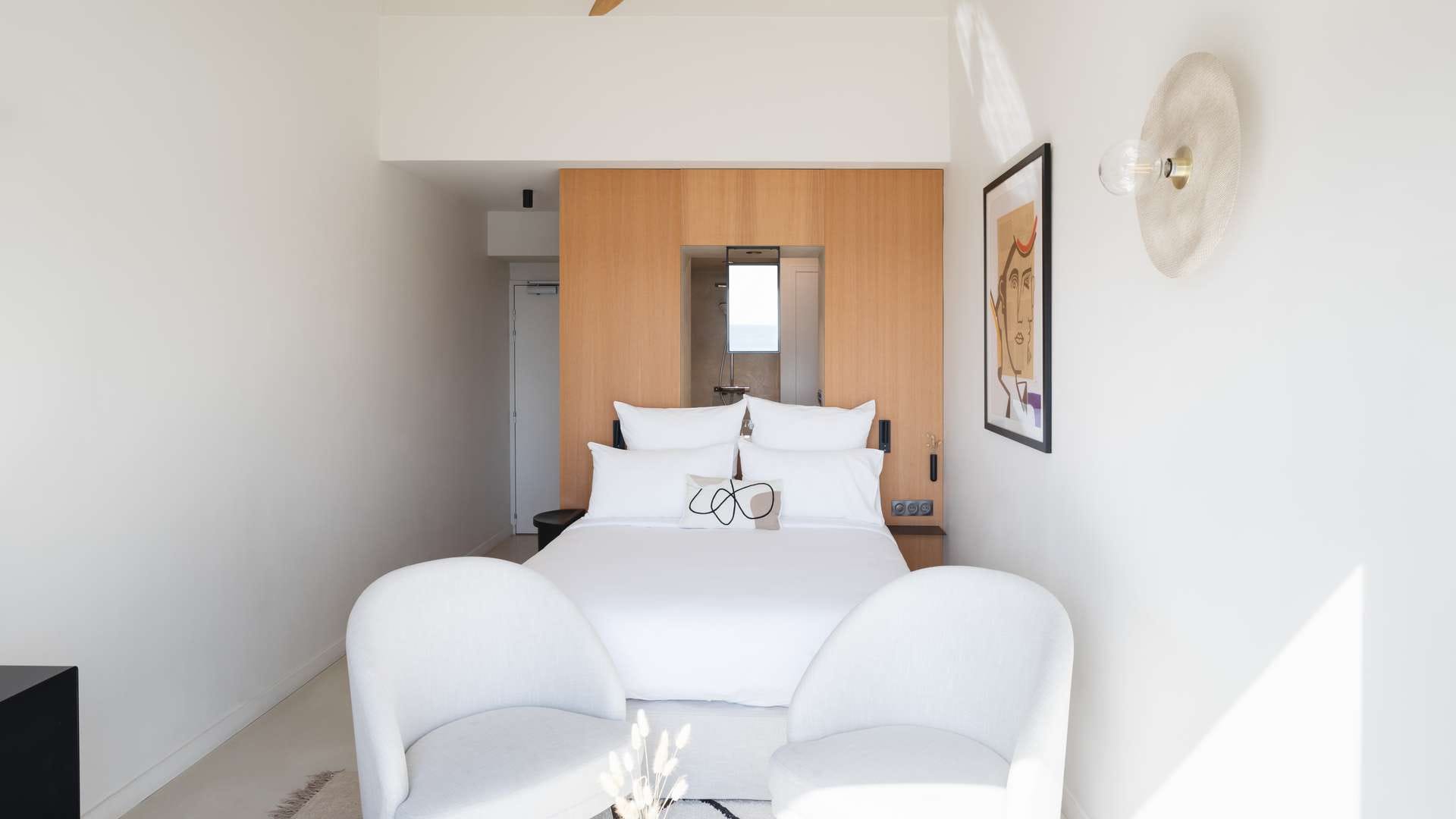 Alors que le crépuscule descend sur la mer, vous rejoignez votre chambre d’hôtel et admirez le soleil corail fendre l’horizon. Avec vue sur la Méditerranée ou le patio arboré, terrasse privative ou jacuzzi, nos 31 chambres et suites vous ouvrent les portes d’une parenthèse zen. Dans ces bulles inondées de lumière, belles perspectives et lignes épurées s’expriment dans des matériaux naturels en bois, verre, béton ciré et céramique artisanale, tandis que le mobilier sur mesure de fabrication française et les prestations premium ultramodernes célèbrent le luxe simple et dessinent le cadre idyllique de votre séjour aux Elmes. Check-in : 15 à 21h Check-out : 8h à 11h