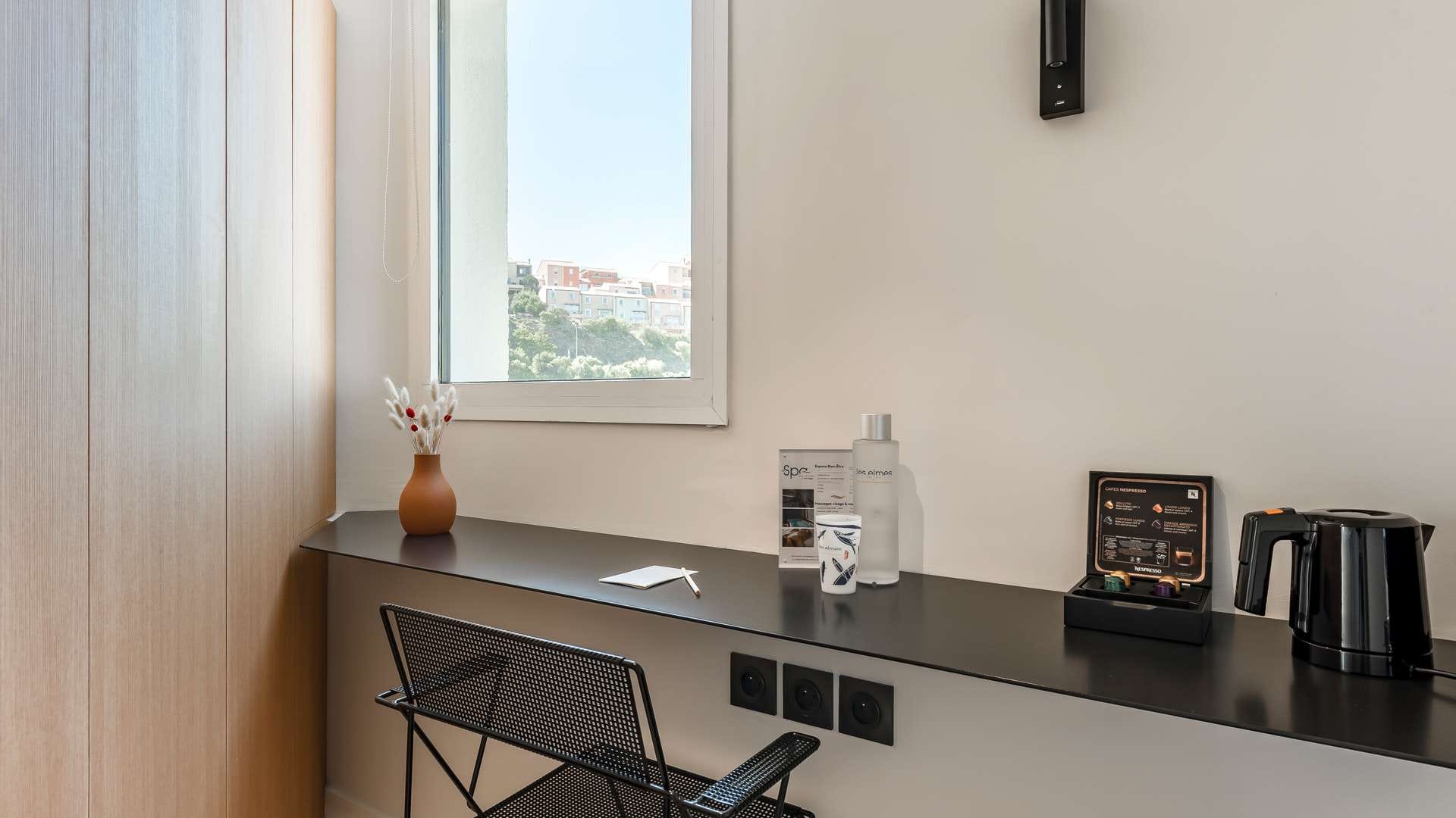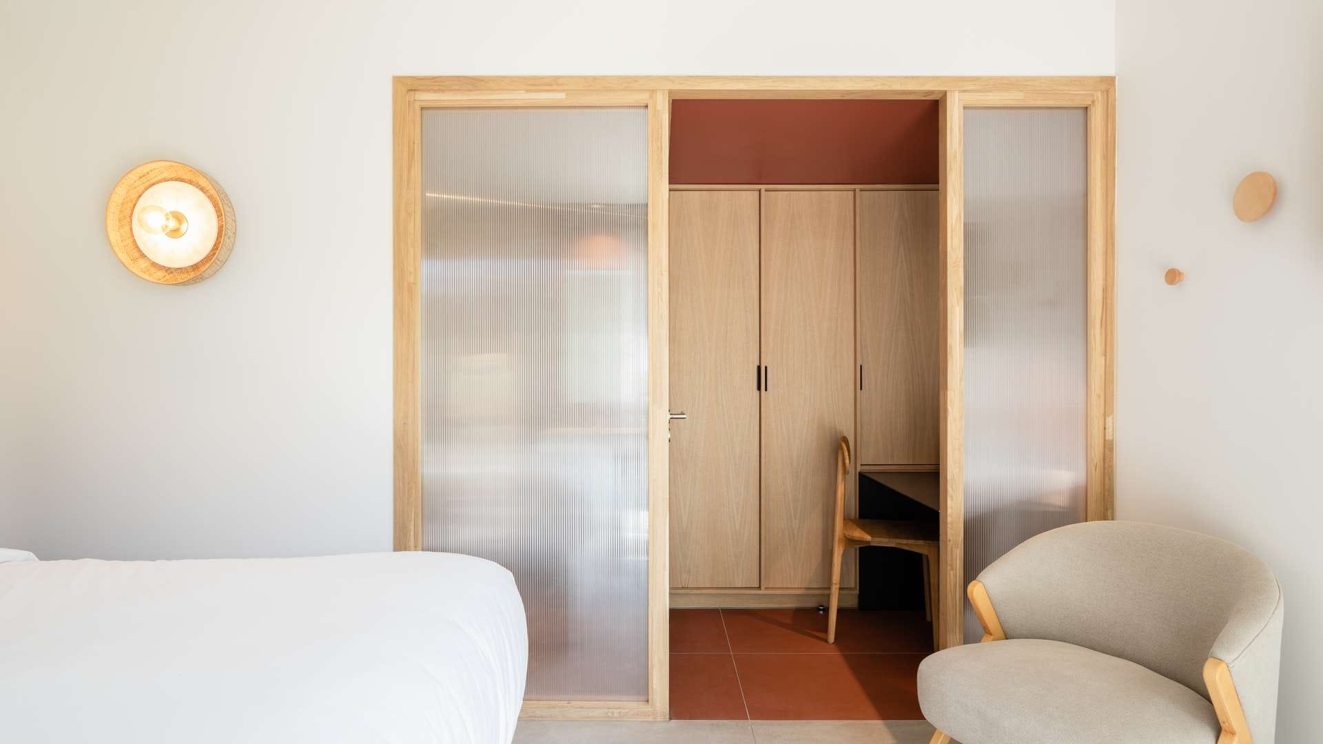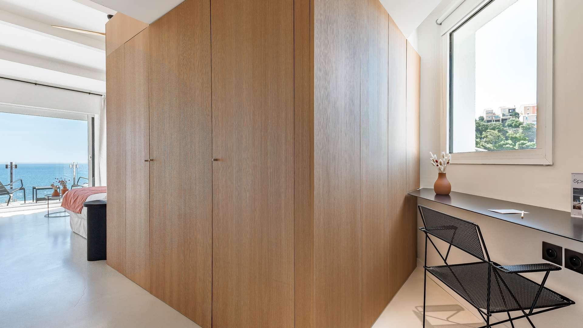 Alors que le crépuscule descend sur la mer, vous rejoignez votre chambre d’hôtel et admirez le soleil corail fendre l’horizon. Avec vue sur la Méditerranée ou le patio arboré, terrasse privative ou jacuzzi, nos 31 chambres et suites vous ouvrent les portes d’une parenthèse zen. Dans ces bulles inondées de lumière, belles perspectives et lignes épurées s’expriment dans des matériaux naturels en bois, verre, béton ciré et céramique artisanale, tandis que le mobilier sur mesure de fabrication française et les prestations premium ultramodernes célèbrent le luxe simple et dessinent le cadre idyllique de votre séjour aux Elmes. Check-in : 15 à 21h Check-out : 8h à 11h