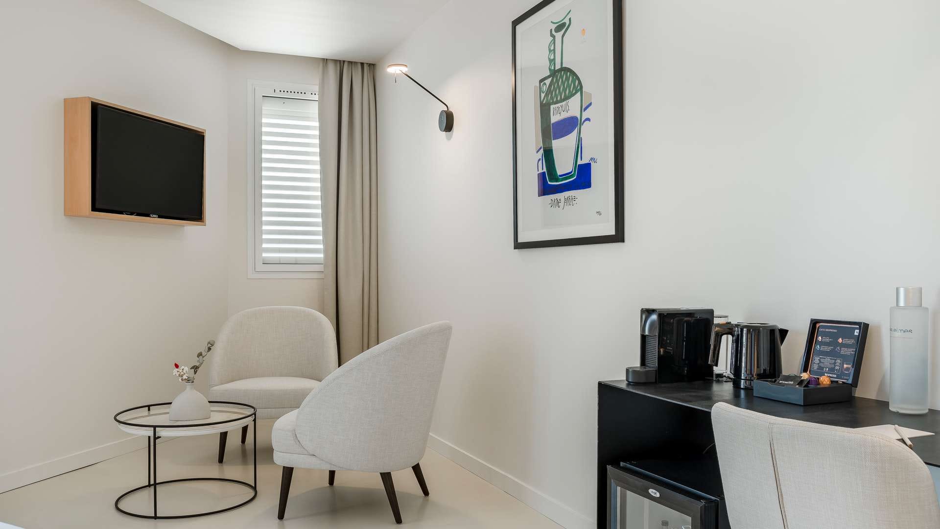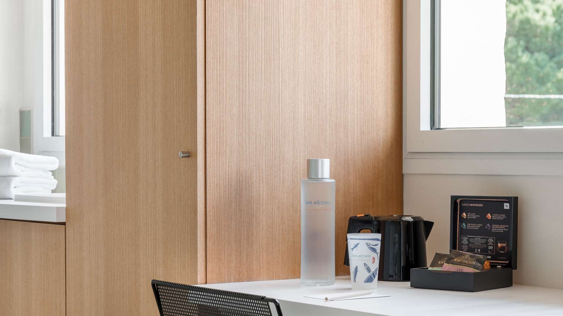 * En raison de notre engagement envers la durabilité environnementale, nous avons retiré les minibars de toutes nos chambres et suites. Si vous souhaitez un minibar dans votre chambre, veuillez en faire la demande lors de votre réservation. Pour plus d'informations, consultez notre charte environnementale [https://hotel-des-elmes.com/charte-environnementale].