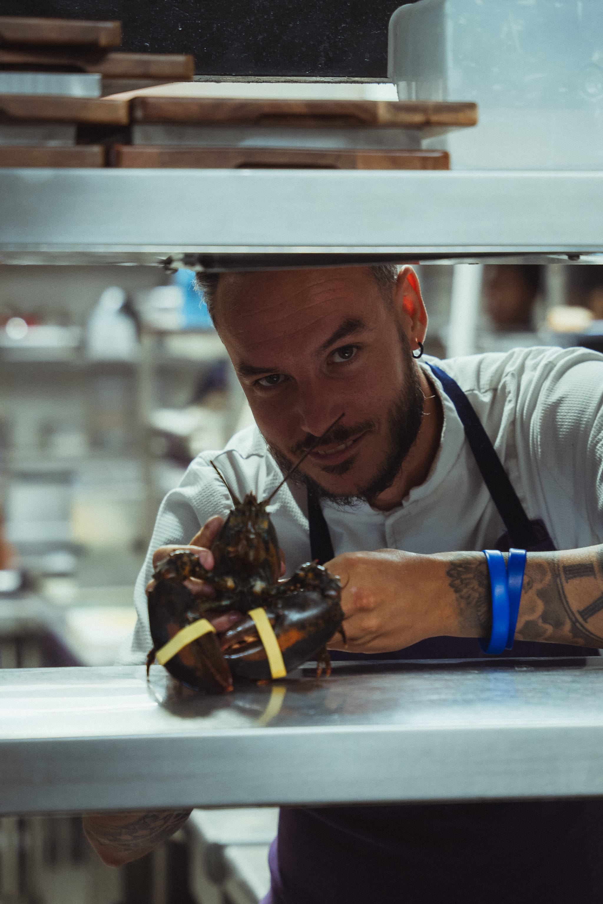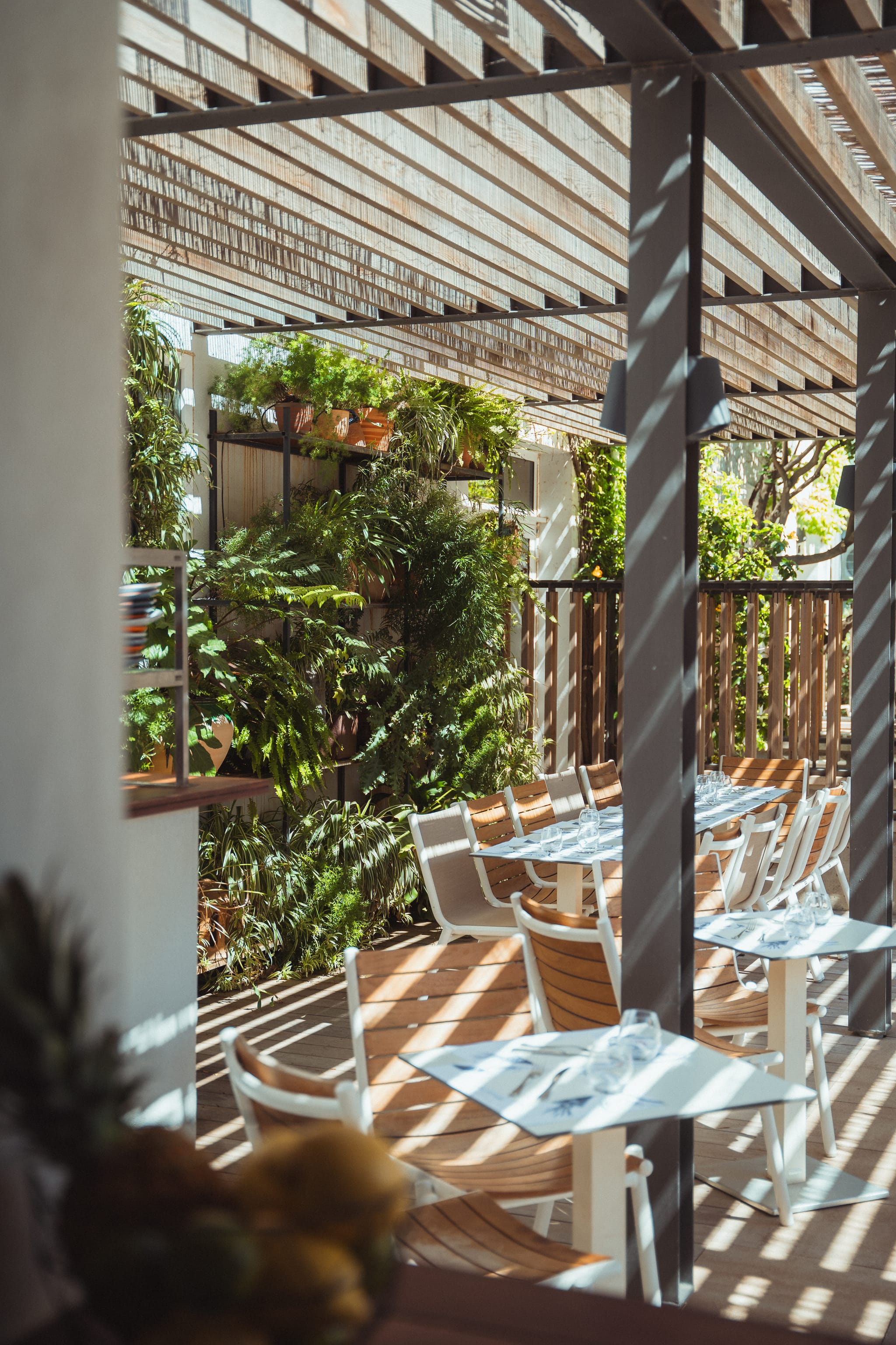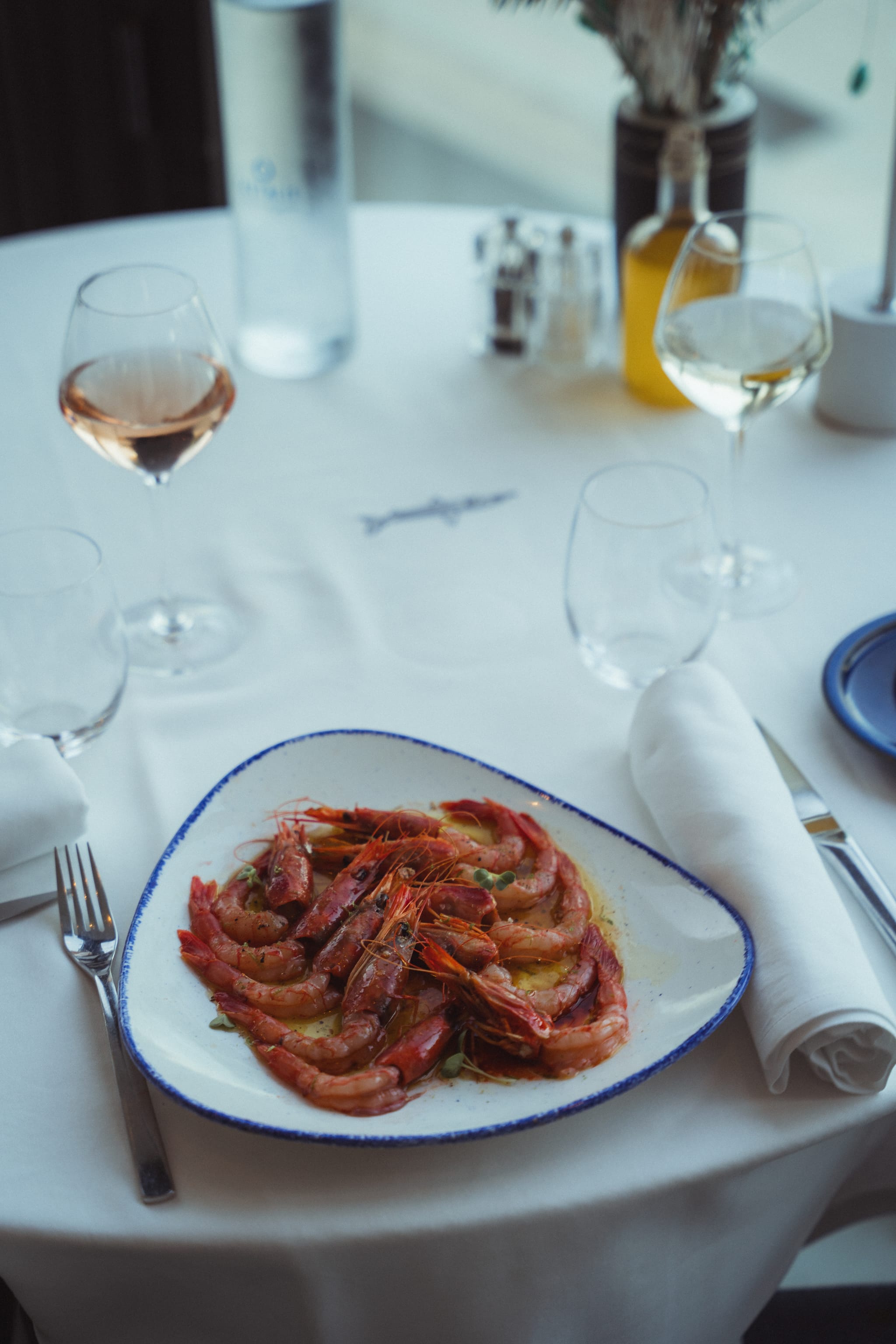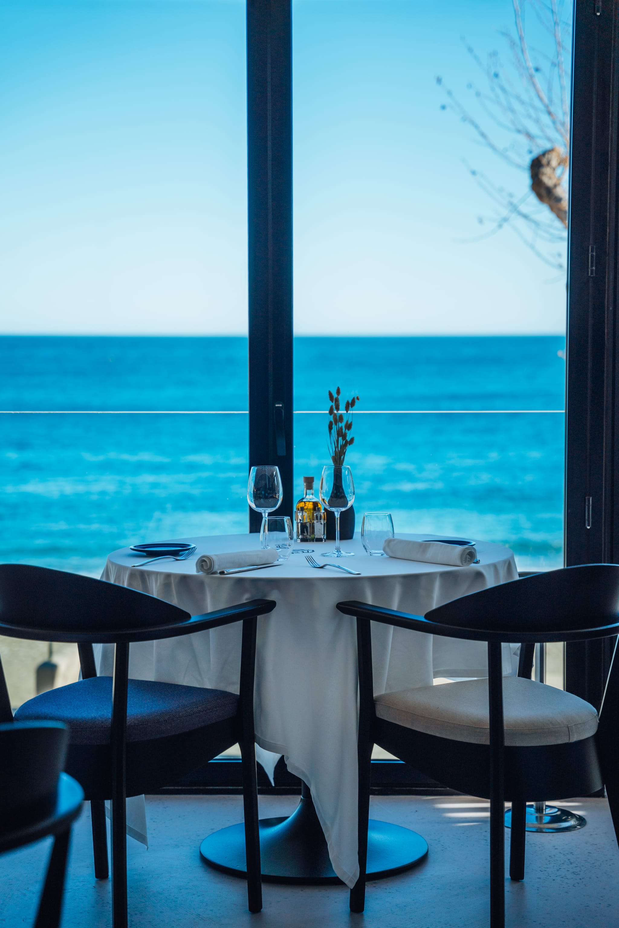 Perché sur votre tabouret en cordes tressées, vous attendez votre table. Dérobé derrière le bar à cocktails, le restaurant dévoile son décor nautique sur mesure. Bleu Klein, lin, cordages, filets de pêche suspendus, perspectives arrondies et mur végétal sont une déclaration d’amour à la Méditerranée qui s’étire au-delà de l’immense terrasse et inspire les créations du Chef, Kévin Védrines. Le regard plongé dans la mer turquoise, vous goûtez les saveurs maîtrisées et parfaitement équilibrées d’une cuisine d’ici, de saison, raisonnée, colorée et conviviale, élaborée comme une ode aux produits de la mer, au terroir et à la gastronomie catalane.