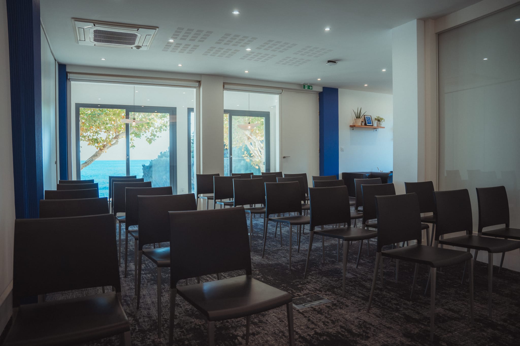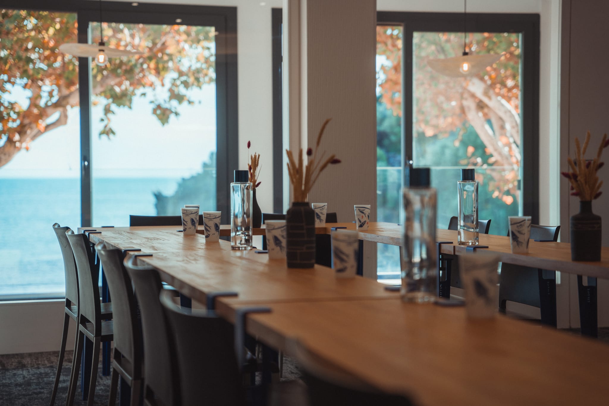 Pour vos séminaires, team building, comités de direction, soirées de gala… Mais aussi pour la réception de communions, baptêmes, anniversaires et autres fêtes de famille, Les Elmes vous proposent de créer vos évènements sur mesure dans le cadre exceptionnel d’un hôtel 4**** au bord de la mer. Au gré de vos envies et de vos besoins, les réunions professionnelles pourront se tenir dans une de nos deux salles de réception ou dans le cadre plus intimiste du petit salon modulable. La terrasse panoramique ainsi que le jardin méditerranéen sont également privatisables. Idéal pour vos manifestations plus informelles. Le reste du temps, vous profiterez pleinement du confort de l’hôtel et des trésors naturels de notre région : bassin de nage chauffé, spa, location de bateau à la journée, repas de Chef ou cocktails dînatoires, suggestions d’excursions, soirées à thème… Nous vous aidons à concocter l’évènement qui vous ressemble. Offrez un séjour inoubliable !